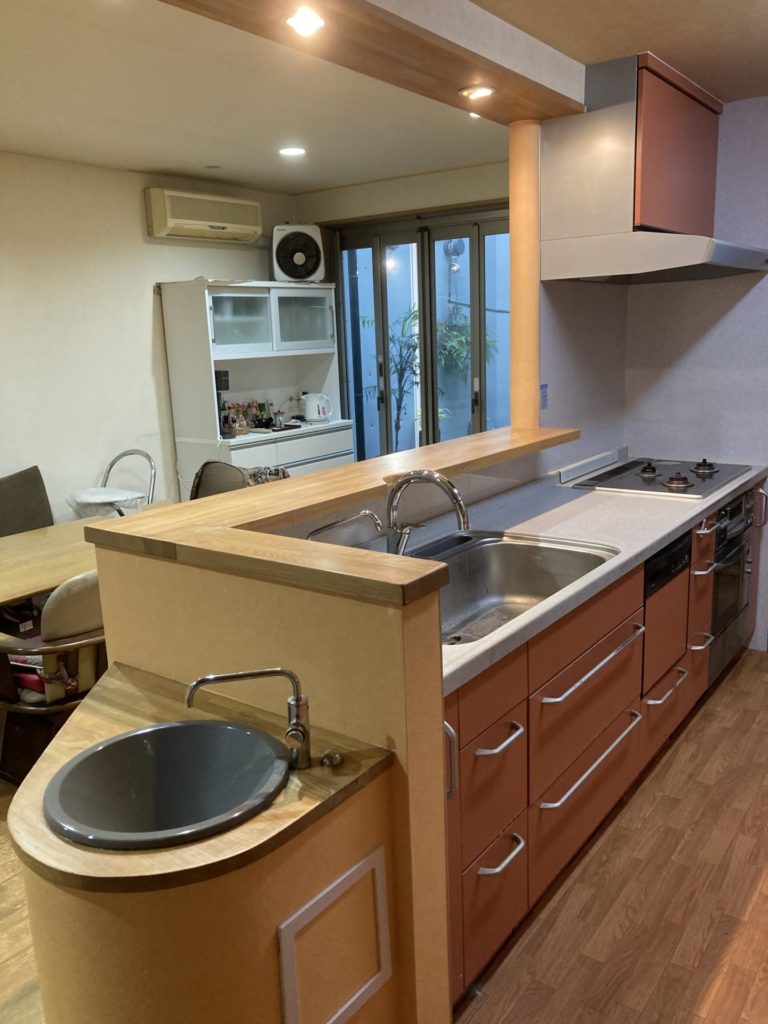 年齢を重ね、高いところが届きにくく不便になってきたということで、キッチンのカウンターを15cm程下げる工事を行いました。