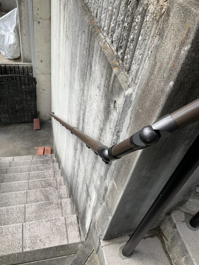 急な階段で安全に昇降できるように手摺を設置したいというご要望です。