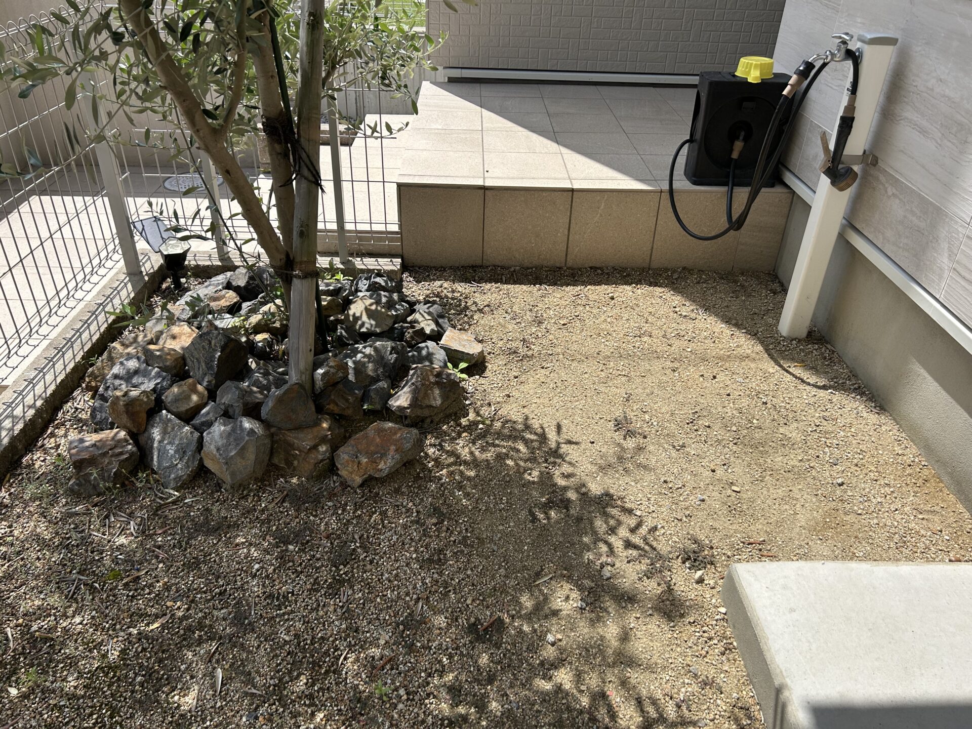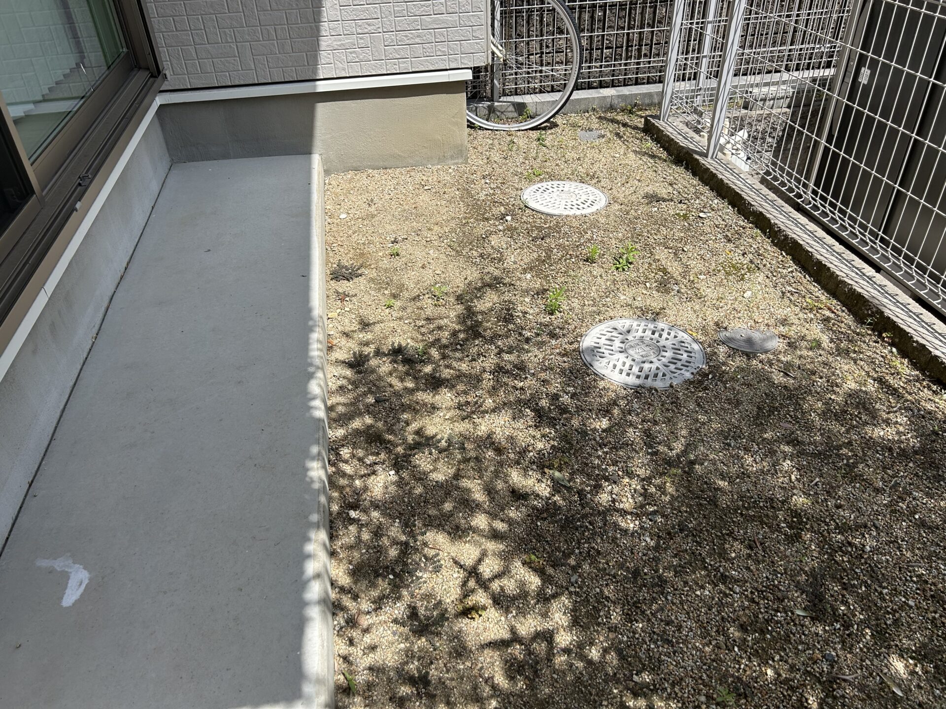土のままだったお庭がタイル張りでより使い勝手のいい空間になりました。