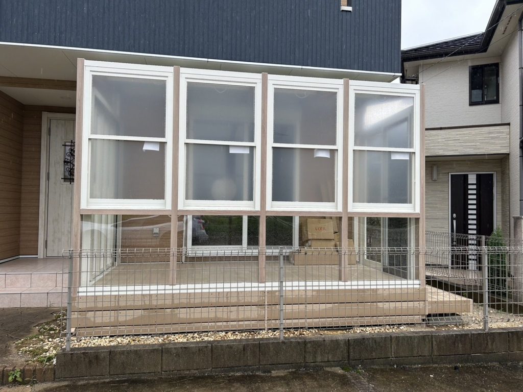 ココマガーデンルームのインナーデッキ仕様で、外にステップを1箇所設置しました。
